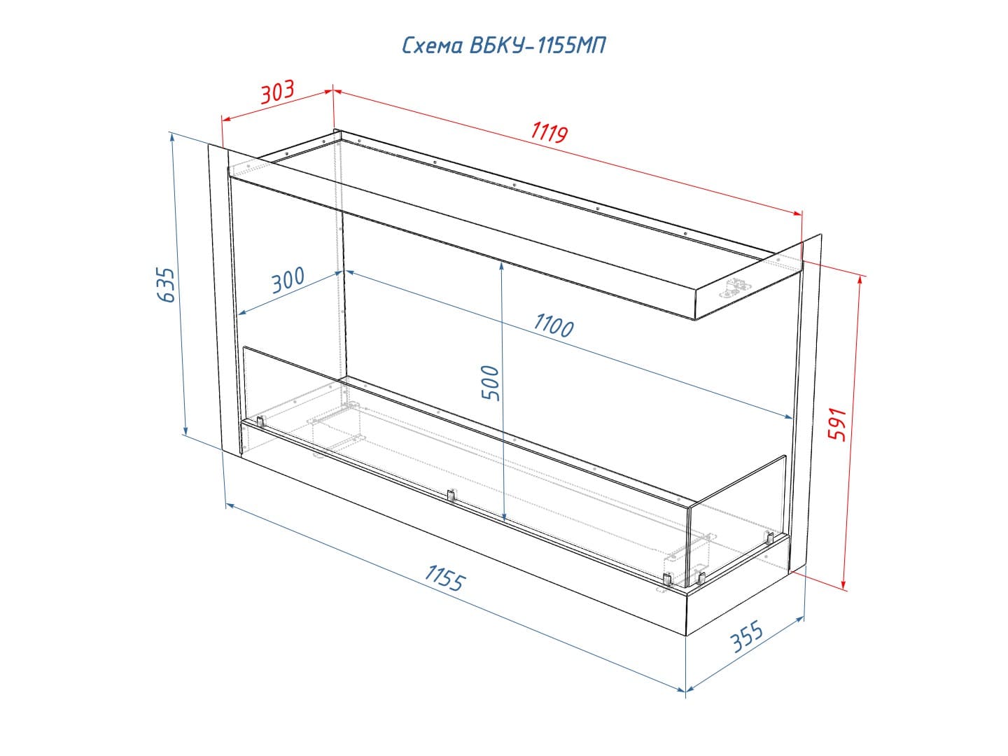 Описание встраиваемого углового биокамина Lux Fire 1155 M (правый угол)